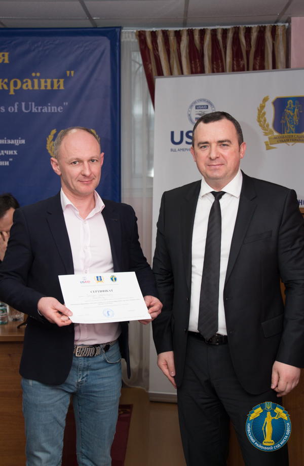 Нагадаємо, що грантова діяльність ГО «Асоціація слідчих суддів України» спільно із Київським районним судом міста Одеси направлена на підвищення ефективності правосуддя через впровадження інноваційних підходів у здійснення судочинства, а також підвищення ефективності правосуддя через заповнення інформаційних прогалин та покращення співпраці судової системи суспільства. Відвідав захід і представник Програми USAID «Нове правосуддя» Сергій Сученко.